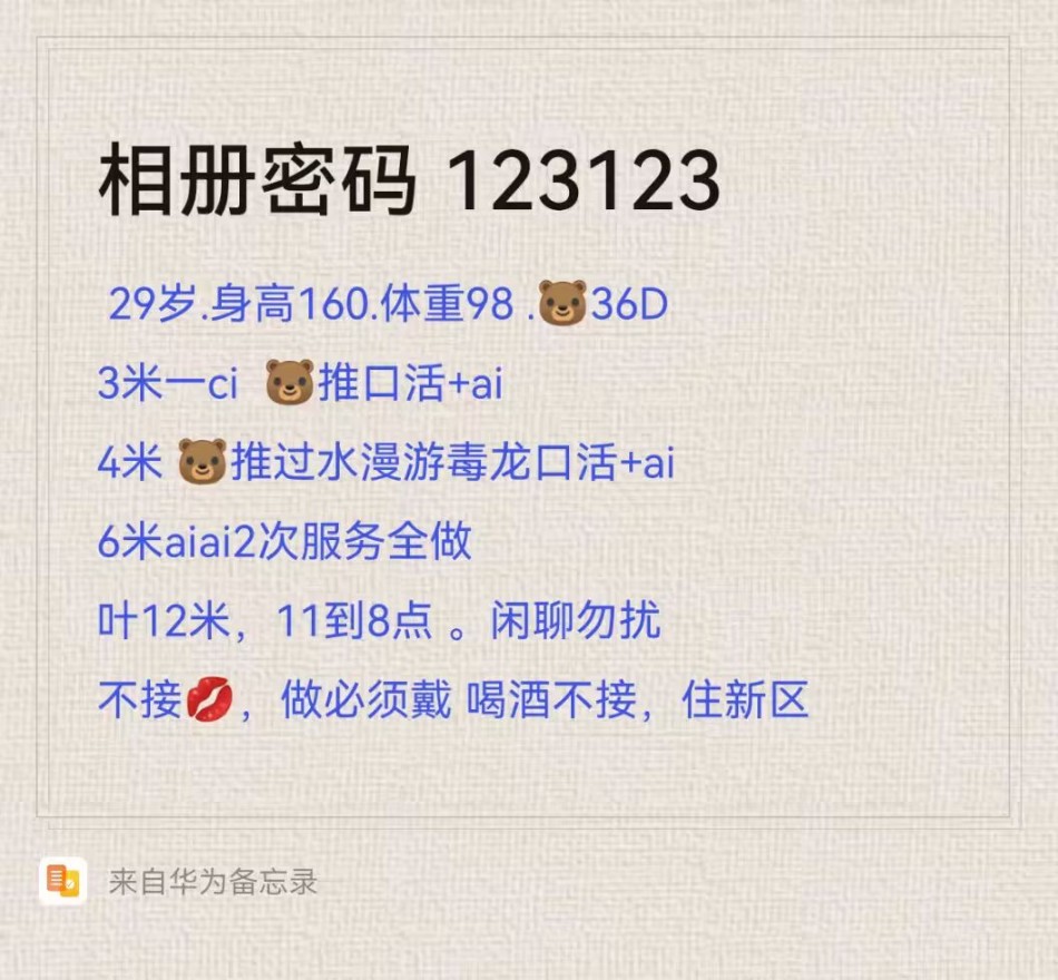 她还有个小姐妹跟她同一个小区,价格一样不过最近休息了,两人联系方式都在上面了