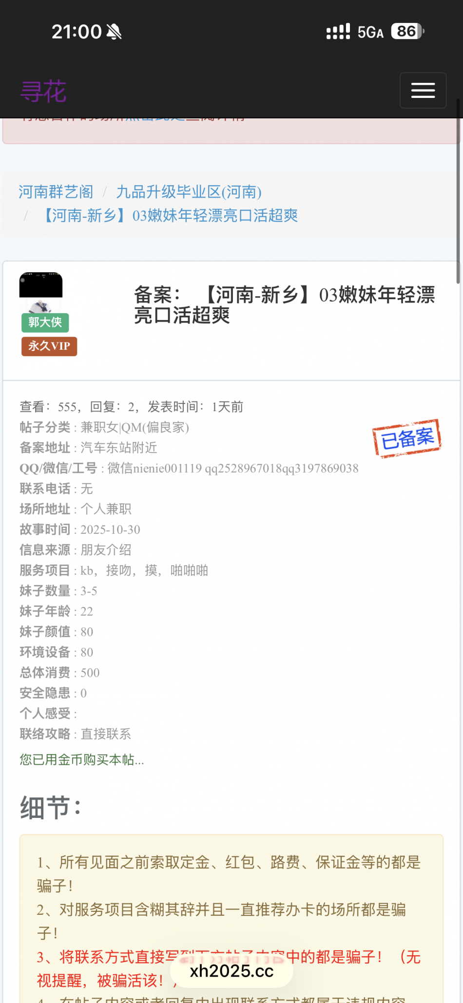 备案: 【河南-新乡】避雷!论坛里介绍新乡的,超级不爽